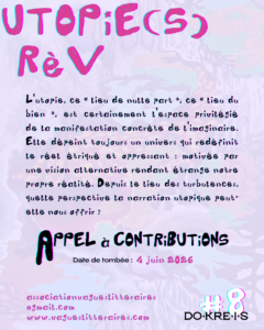 Le 7e opus de la revue DO-KRE-I-S, paru en septembre 2025, a accueilli plus d’une centaine de contributions, d’œuvres et de réflexions critiques autour du thème Turbulence(s) / Dezòd. Ce numéro révélait les expériences individuelles et collectives des dynamiques de répression, mais également la terrible résistance dont nous avons toujours fait preuve. Réaffirmer notre présence au monde. C’est sur le fil de cette promesse, extensif entre les pages, que nous devons tirer pour continuer à tisser notre épanouissement – à l’intérieur ou à l’extérieur des turbulences. Si, au détour de ce numéro, Isis Labeau-Caberia nous alerte sur la nécessité de « […] réactiver notre capacité à concevoir des alternatives à partir de nos propres référentiels conceptuels […] », nombreuses déjà sont les propositions qui esquissent les traits lumineux d’un vivre-ensemble bâti sur le socle de nos complexités en symbiose ; à l’orée d’une prise de conscience radicale de notre condition actuelle d’assujetti·es. Larguons les amarres, afin de donner souffle à ces voiles déjà bien dépliées. Prenons le large. Ainsi, pour le huitième numéro de DO-KRE-I-S, nous vous proposons d’arpenter le domaine de l’utopie, du rèv ; en terre-créole, en île-monde.